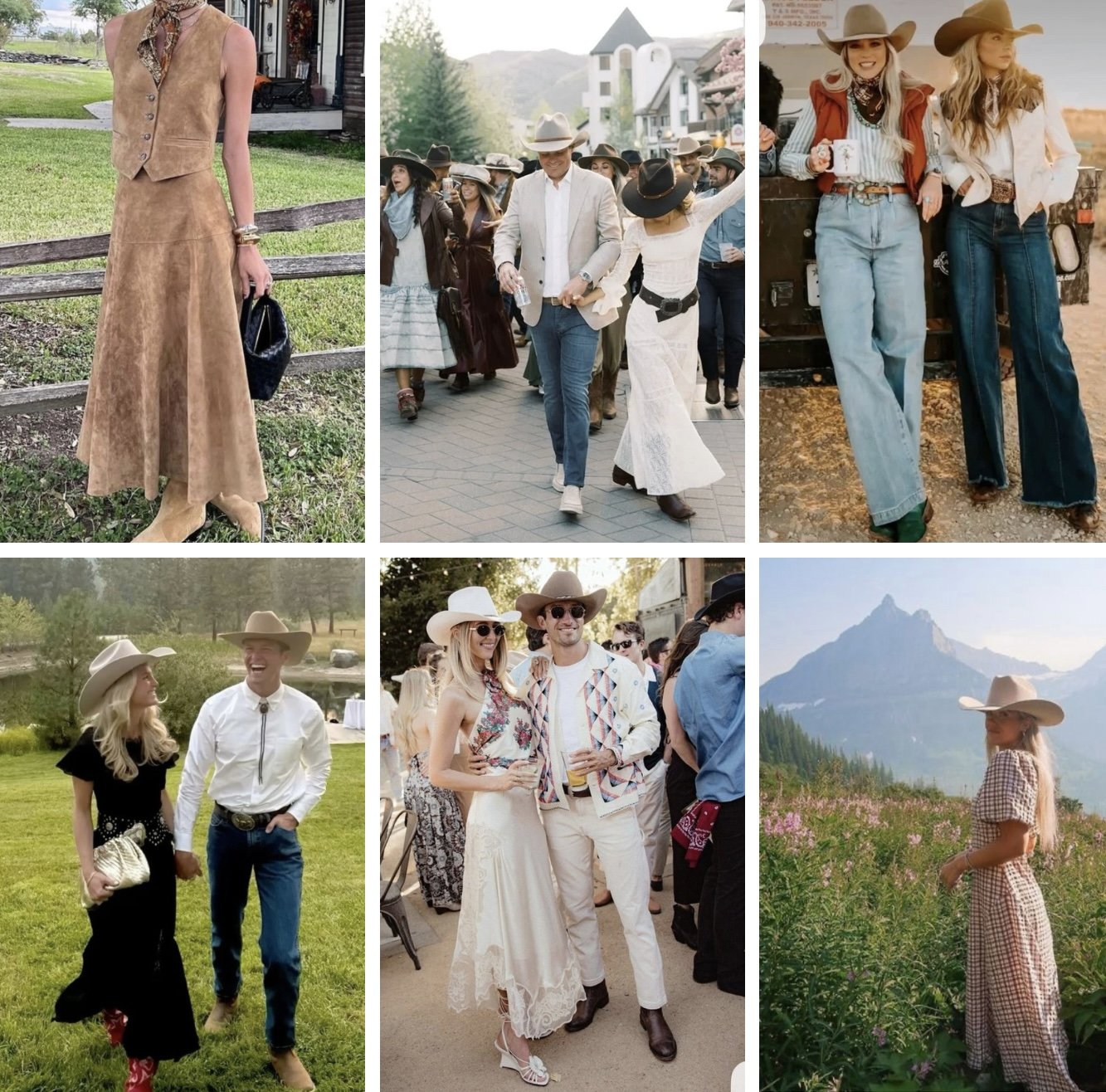 MOUNTAIN COCKTAIL ATTIRE: A mix of country charm with rustic chic! Guys, go for slacks with a button-down. Ladies, shine in an ankle-length dress or skirt. Cowboy boots, hats, and bolo ties are welcomed and encouraged!